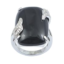 Best prices Sterling Silver 17x25mm Onyx and Diamond Ring (1/10 cttw), Size 7 Sterling Silver 17x25mm Onyx and Diamond Ring (1/10 cttw) ...